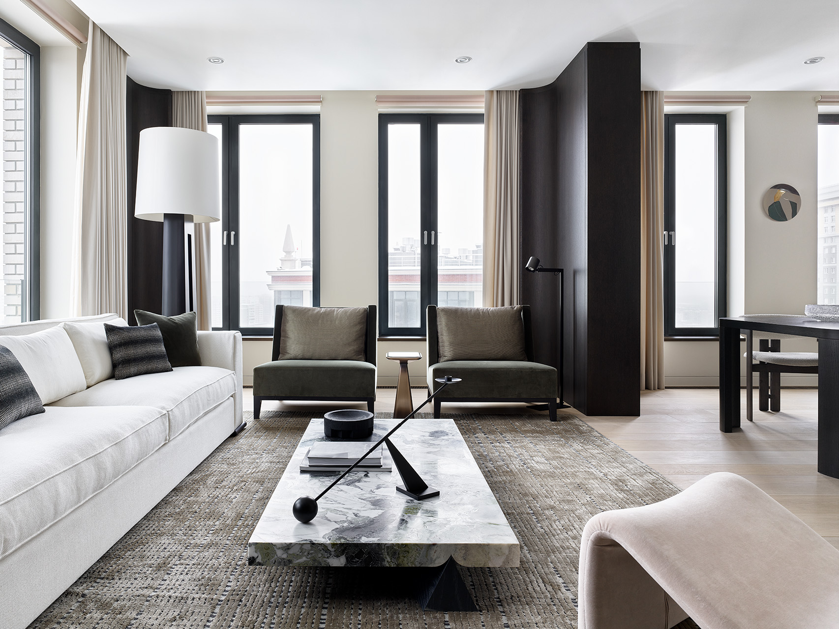 Светильники расположили, настроили и нацелили так, чтобы выделить функциональные зоны. И позаботились о едином дизайне для всего оборудования.